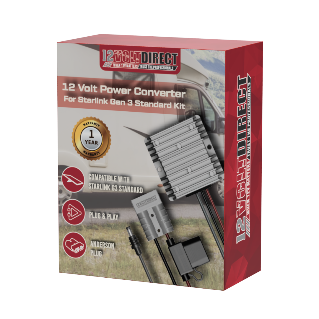 Keep your Starlink Standard Kit (V3) online and stable with this heavy-duty 12V to 57V DC step-up converter, purpose-built by 12 Volt Direct for caravans, 4WDs, off-grid battery systems, and mobile setups.
